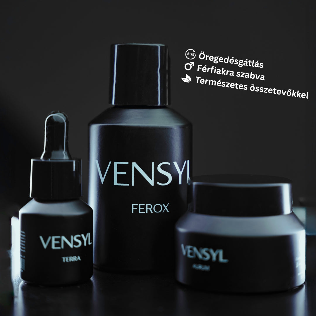 A Vensyl hármas csomag mindent tartalmaz, amire a problémás, ráncos, pattanásos férfi bőrnek szüksége van: Ferox arclemosó, Terra szérum és Aurum hidratáló.